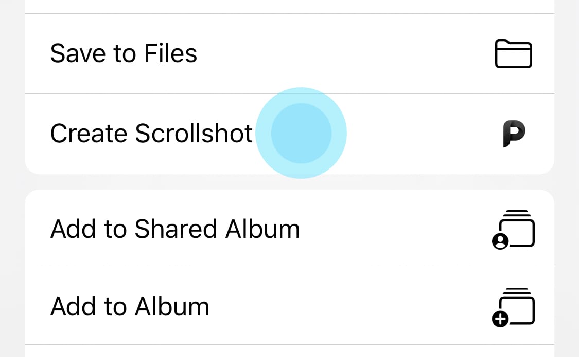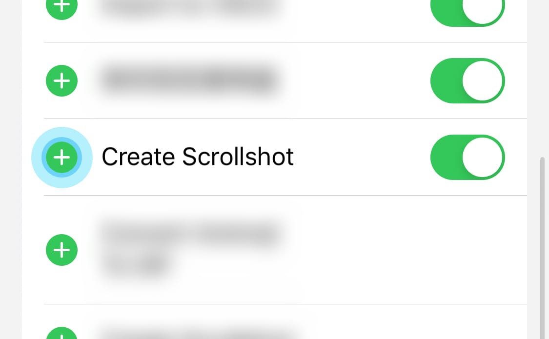Find Create Scrollshot in the list, turn on the switch on the right side, tap the