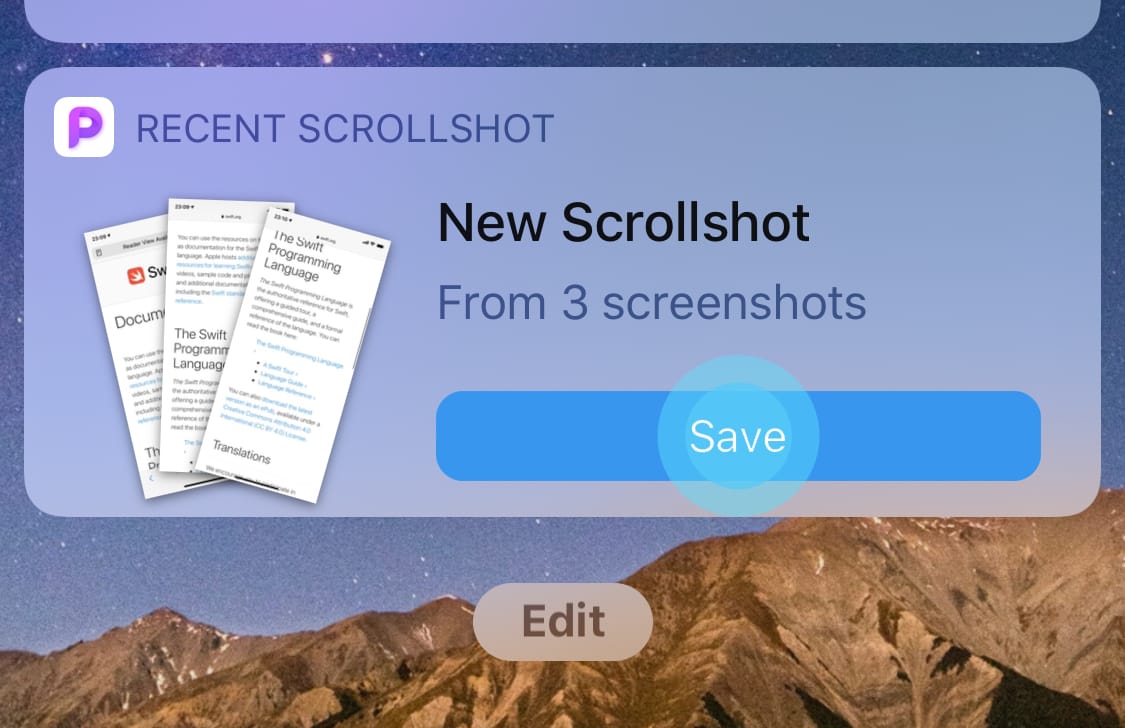 After you manually take screenshots in sequence, the widget will recognize and automatically stitch them together. If stitch succeed, you can save the scrollshot in widget directly.