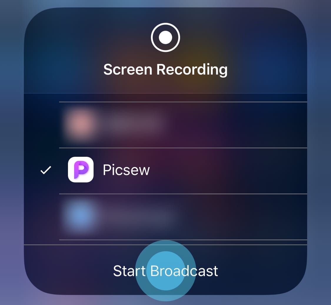 ⚠️ If Picsew is not found, please reboot your device or add the Screen Recording control again.