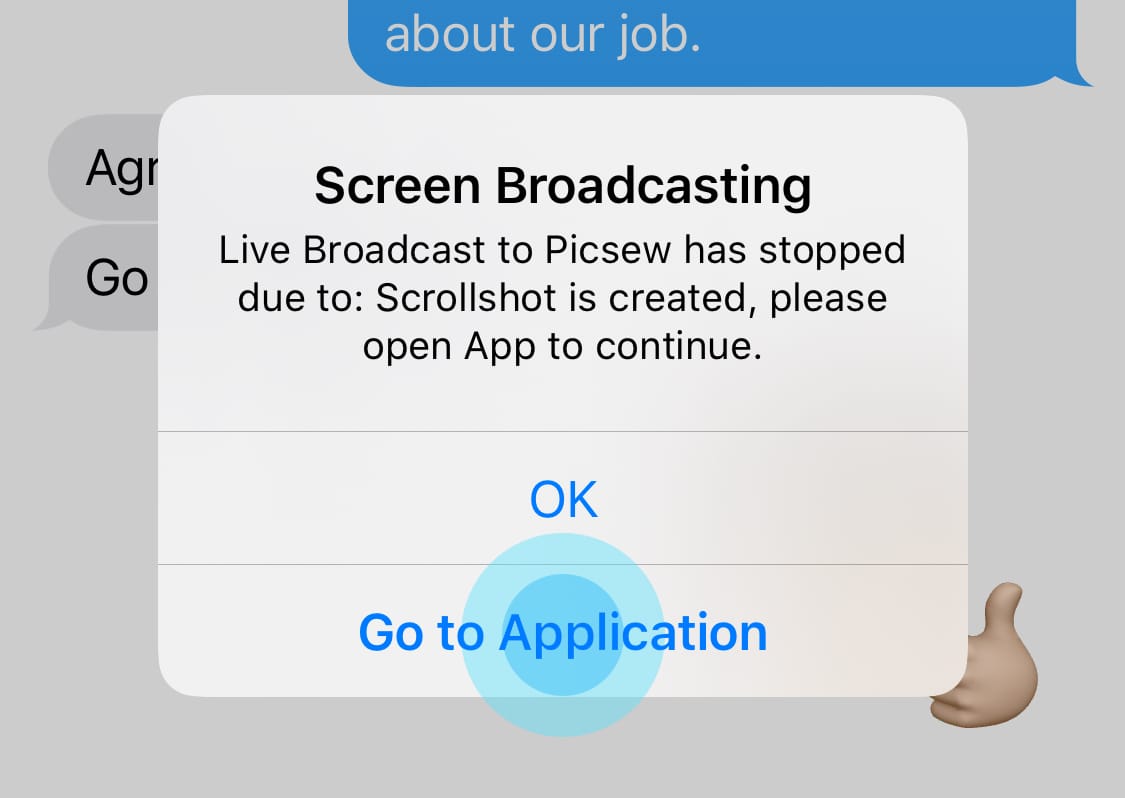 Keep scrolling the screen content, stop where you want to end Scrollshot Recording, wait for 1 second (you can change the time in App), Picsew will automatically end the screen recording, and generate a scrollshot, tap Go to Application to continue.