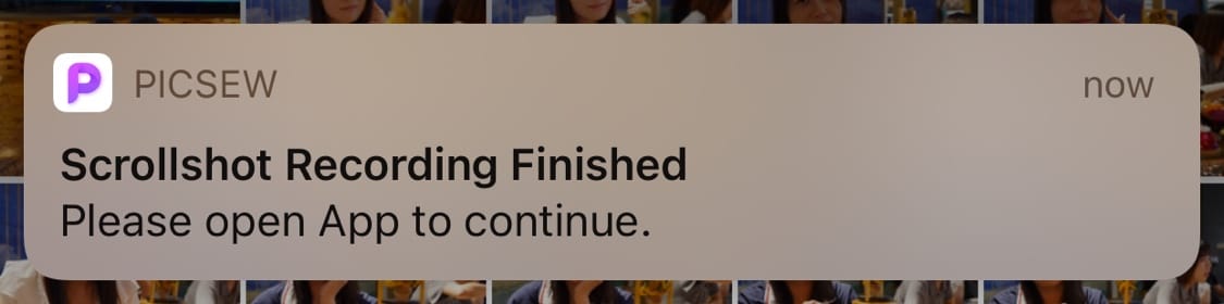⚠️ In iOS 14, Picsew will prompt you that Scrolshot Recording is finished by sending notification. If you forbid Picsew to send notifications or enable Do Not Disturb, you will not be able to see this notification.